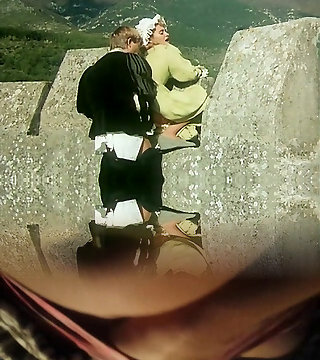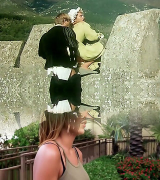 Horny lord catches and gropes hot ash-blonde lady in his castle