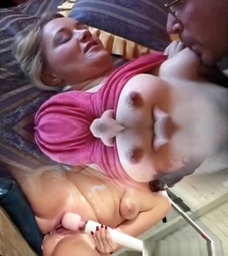 Slutty brunette and blondie whores have fun their men