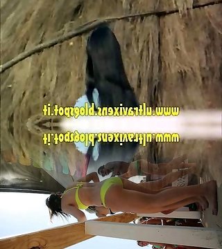 Classical nude duo have fun in public beach