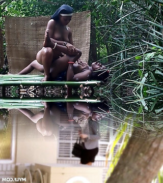 Booty short haired black haired dark skinned teen gets absorbed with railing a pipe