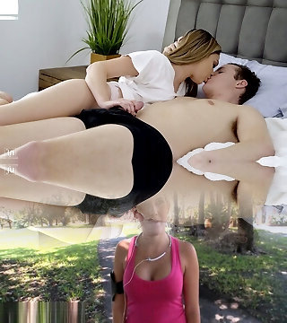 Ultra-cute girlfriend wakes up her boyfriend Justin Hunt with hot hook-up early in the morning