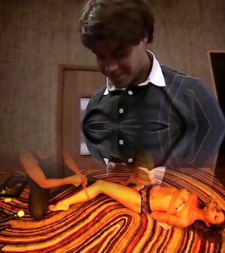 Vintage shoot of slave nutsack getting busted in BDSM porn