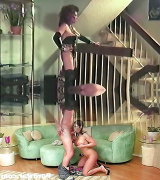 Hawt mistresses in latex lingerie finger fucks her beau's ass