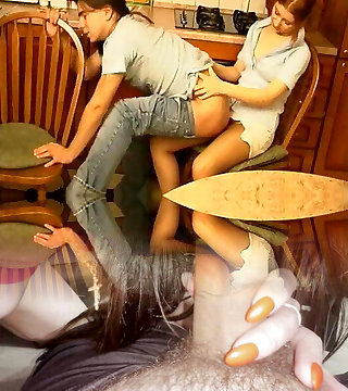 Fine ass lesbians moan in ecstasy as they lick and plumb their pussies toughly with a humungous strapon