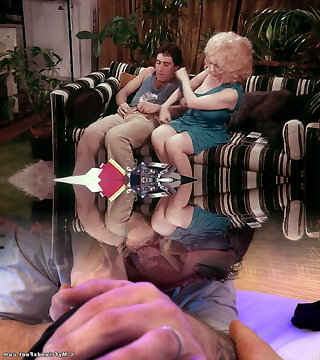 Ash-blonde eighteen age teenager and Mother I'd Like To Fuck share one boner