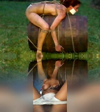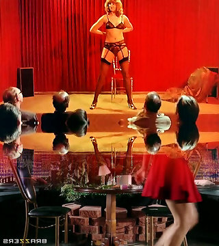 Horny brunette Milf Tina Kay in vintage and retro lingerie nylon and high heels gets herself off with enormous dildo toy
